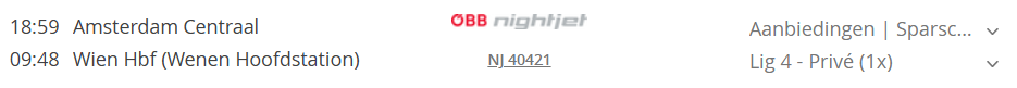 - Nachttreinen naar Oostenrijk: 18 slaapcompartimenten met wastafel, douche en wc ("Single/Double/Triple DeLuxe"). Vaak uitverkocht. Ook buiten vakanties en weekenden om. 84 Minicabins, afgesloten slaapaccommodatie voor 1 persoon. 9 Couchettes met 4 bedden
